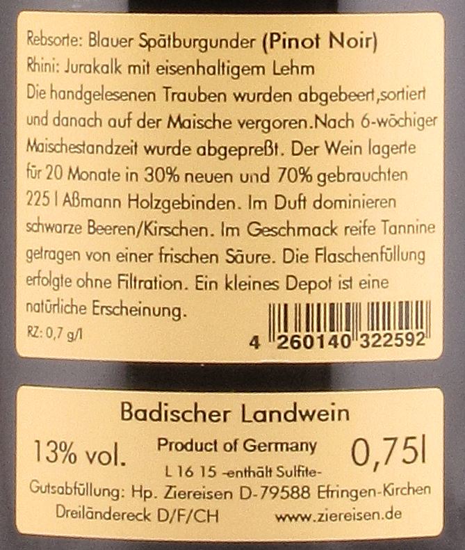 Erzeuger: Weingut Ziereisen, Markgrafenstraße 17, D-79588 Efringen-Kirchen