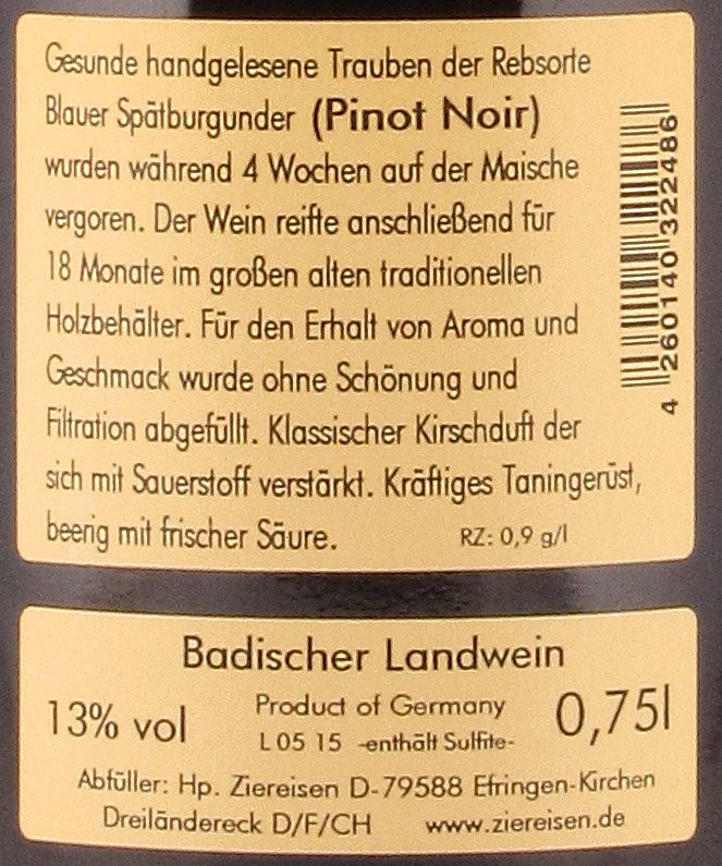 Erzeuger: Weingut Ziereisen, Markgrafenstraße 17, D-79588 Efringen-Kirchen