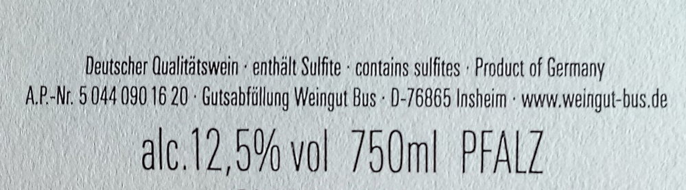 Das Weingut Bus steht für unkomplizierte, fruchtbetonte Weine mit dem Ausdruck typischer pfälzer Lebensart und -freude. Die Bus-Weine sind ideale Begleiter für gesellige Runden und eignen sich durch ihren guten Gehalt ebenso als Essensbegleiter.