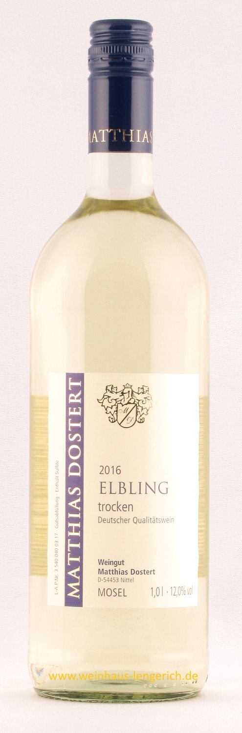 Dosterts Elbling ist ein lebendig-frischer, feinfruchtiger Weißwein mit leichter mineralischer Würze. Unkompliziert und saftig, mit sehr klarem Geschmacksbild und hervorragendem Preis-Genuss-Verhältnis!
