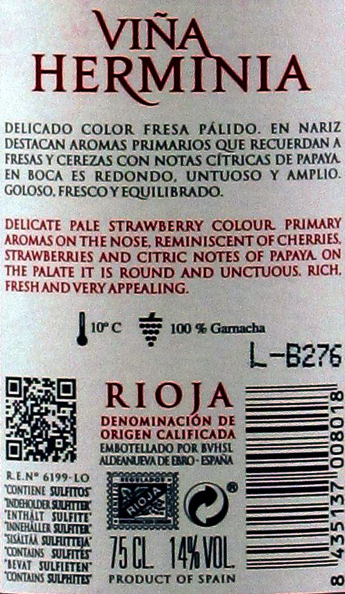 Garnacha Rosado 2015, Rioja DOC, Bogegas Viña Herminia