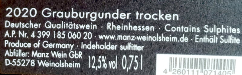 Abfüller: Weingut Manz, Lettengasse 6, D-55278 Weinolsheim