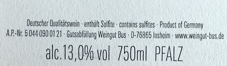Das Weingut Bus steht für unkomplizierte, fruchtbetonte Weine mit dem Ausdruck typischer pfälzer Lebensart und -freude. Die Bus-Weine sind ideale Begleiter für gesellige Runden und eignen sich durch ihren guten Gehalt ebenso als Essensbegleiter.