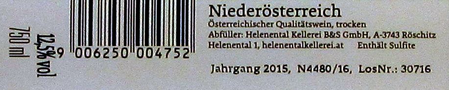Abfüller: Helenental Kellerei B&S GmbH, Helenental 1, A-3743 Röschitz, Österreich