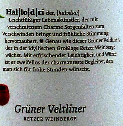 Der „Hallodri“ ist ein leichter, erfrischender Grüner Veltliner mit klaren Fruchtaromen und typischer, feiner Würzigkeit.