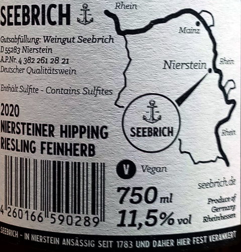 Erzeuger: Weingut Seebrich, Schmiedgasse 3, D-55283 Nierstein