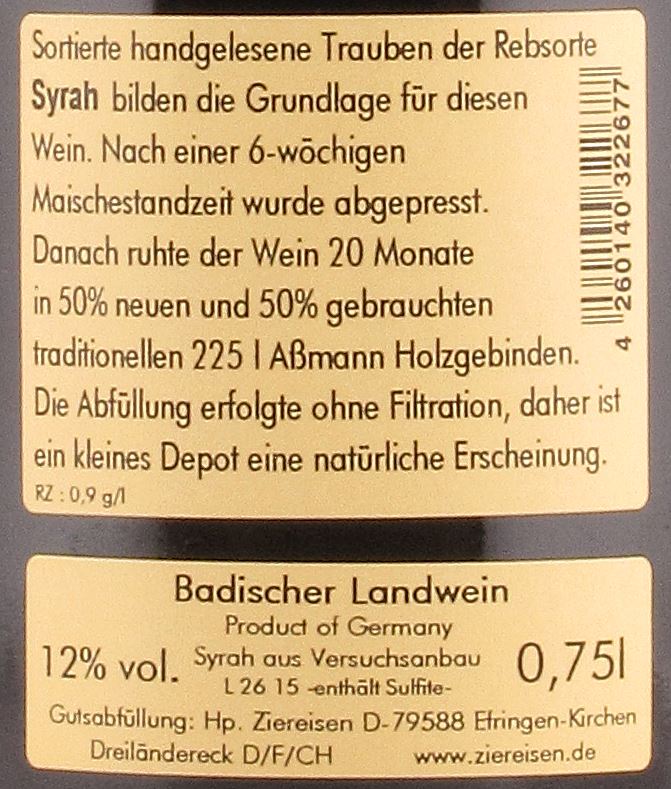 Abfüller: Weingut Ziereisen, Markgrafenstraße 17, D-79588 Efringen-Kirchen